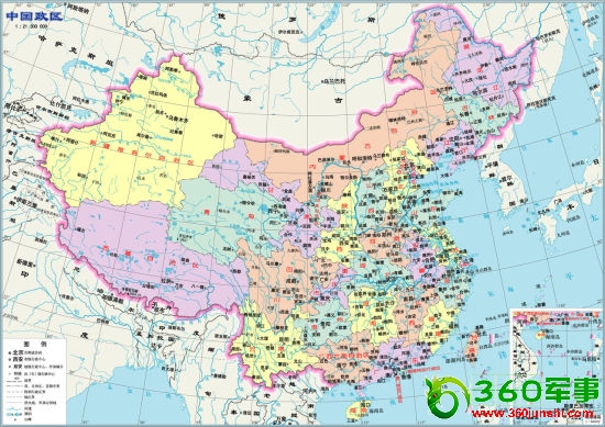 现行出版的中国地图,都主要突出了陆地面积,而把南海疆域缩小比例尺,放置在地图下方。资料图:中国行政区划图