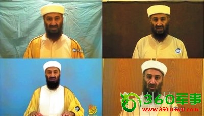本拉登录制讲话的4个画面。