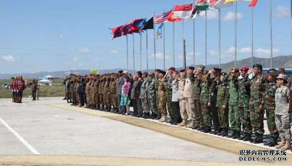 资料图:2011年7月31日,在蒙古首都乌兰巴托,包括军事演习参加国和观察员国在内的各国军事代表团出席开幕式。当日,“可汗探索-2011”多国维和军事演习在距首都乌兰巴托以西65公里处的蒙古国武装力量培训中心拉开帷幕,来自蒙古国、美国、韩国、印尼、柬埔寨、印度等国的600多名士兵参演。新华社记者黄龙杰摄