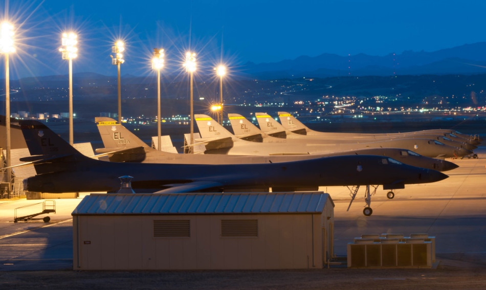 6架B-1B战略轰炸机停在艾尔斯沃斯空军基地机坪上