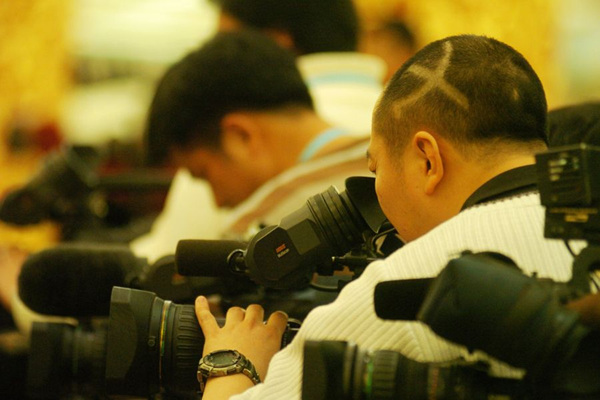 2010年3月7日,十一届全国人大三次会议举行记者会,外交部部长杨洁篪答记者问。该名记者理了镰刀斧头图案的发型。