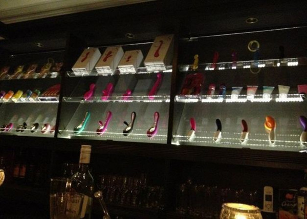 这家店内与一般酒吧的装潢差不多,但最大不同是吧台后方及座位桌上摆的不是各种酒,吧台后整面玻璃墙上放满了各式各样环肥燕瘦的女性性道具,从最简单的手动品,到最顶级、变速、变温、旋转、蓝牙控制、喷水的高档货,应有尽有,让人大开眼界。再加上店内不断传来电池转动马达时所发出的“滋滋声”,女人在这想不谈论自慰这档事真的很难。