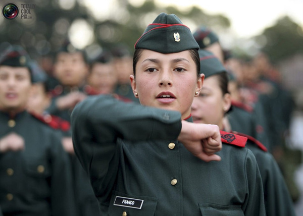 哥伦比亚女军校生正在训练。