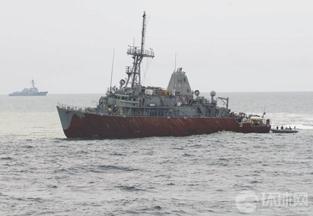 1月底,美国海军人员紧急转移“护卫者”号上的物资