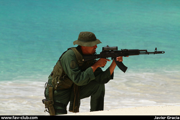 委内瑞拉士兵装备俄制AK101系列步枪。