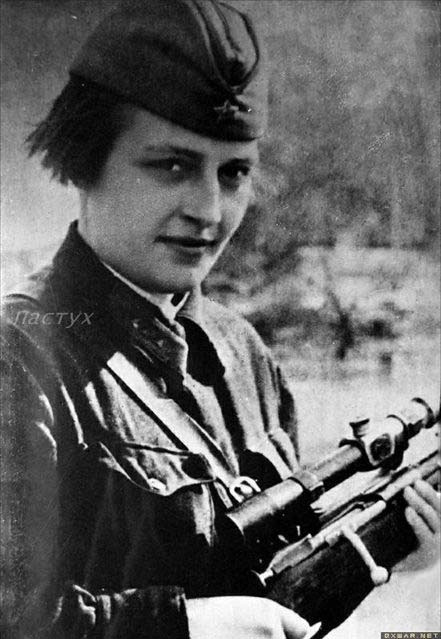 帕夫利琴科少将柳德米拉·米哈伊尔洛夫娜·帕夫利琴科:苏联英雄、海军少将。年轻时曾是一位十分漂亮的姑娘,她那天真纯洁而又充满活力的大眼睛中透露 出世人少有的坚毅。谁都很难想象,正是这样一位年轻美丽的姑娘,竟然是一名出色的狙击手——在敖德萨和塞瓦斯托波尔战役中一共击毙了309名德军,创造了 巾帼不让须眉的狙击神话。她也是在射杀人数超过300人的25名着名狙击手中的惟一一名女性。