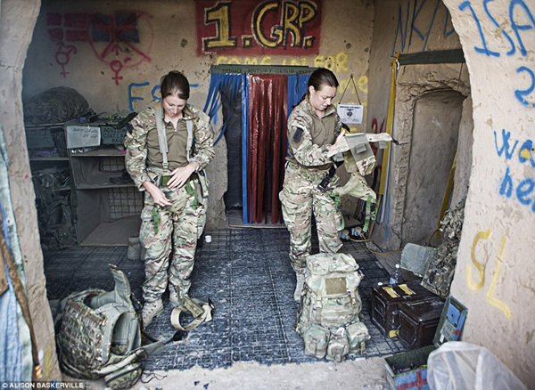 图为女兵们为一次集体巡逻做准备,她们要去一些居民的家中教授他们兽医知识。在当地,通常是由儿童来照料家中的山羊。