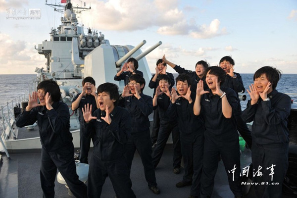 北海舰队女舰员集体亮相 展现青春活力(1)(2)
