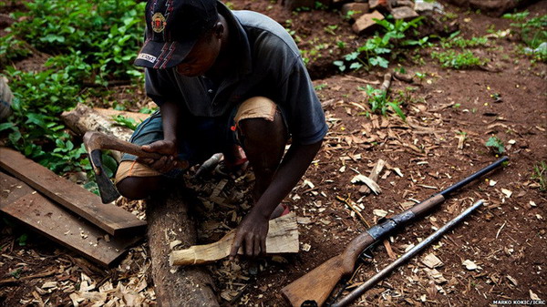 Billy Sallet(中间)是驻扎在中非共和国奥博小镇的一名军官,他所在的部队在此是为保护奥博和周围村庄,抵抗来自乌干达反政府武装上帝抵抗军的骚扰。