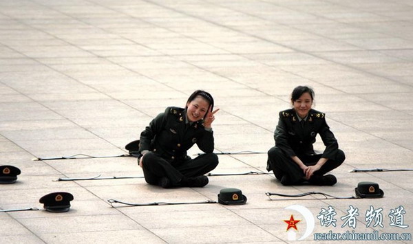 美丽可人的军中姐妹花休息期间不忘卖萌(1)(2)