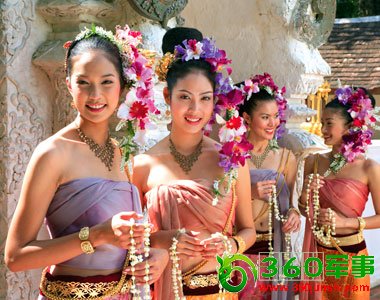泰国女人喜欢浓妆艳抹,配合艳丽的民族服饰,很妥帖。